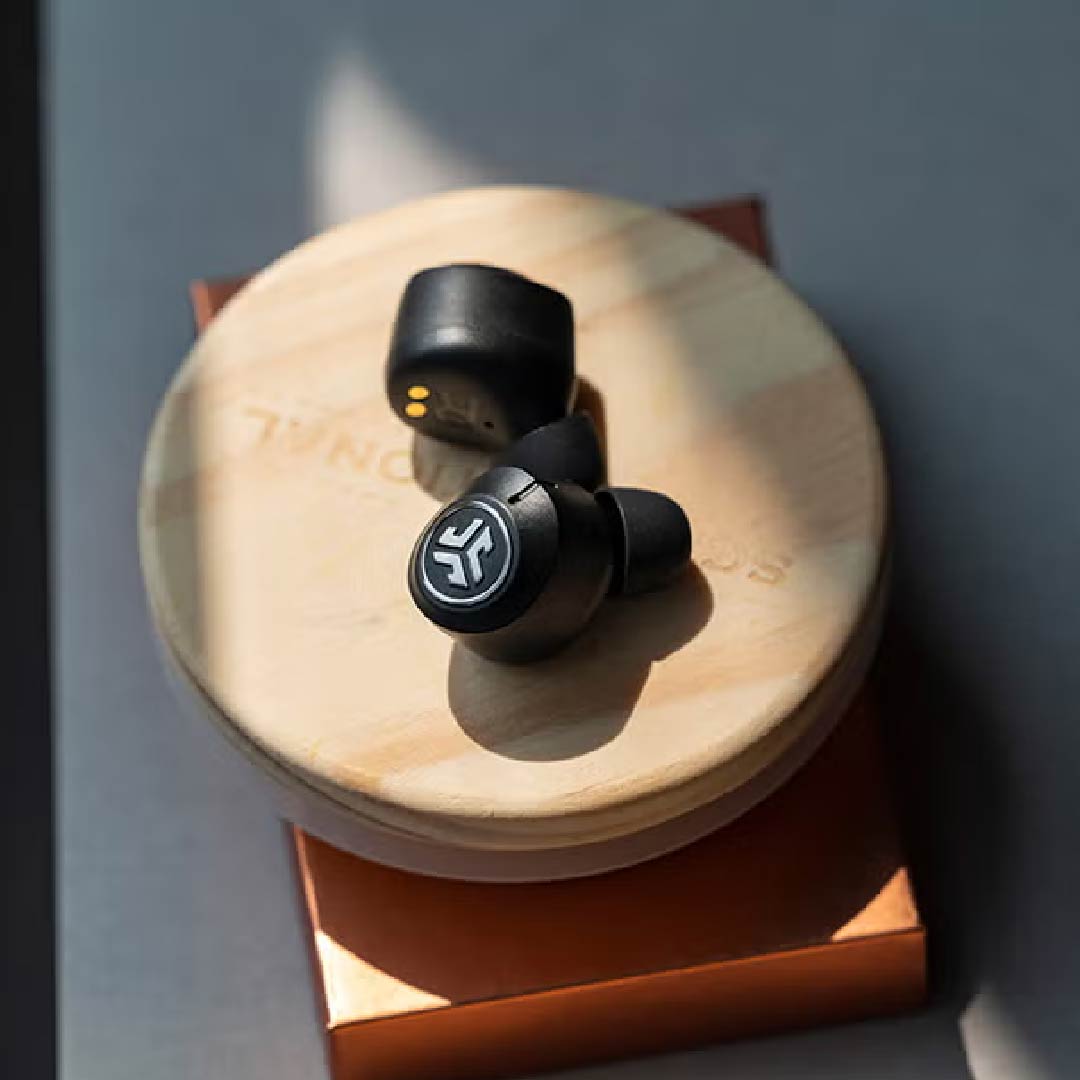 JBuds Air ANC features 10+ hours of wireless playtime in each earbud and 30+ additional hours from the charging case. That’s 40+ total hours of Bluetooth 5.2 playtime. Plus, use ANC to tune out even more and you’ll get 24+ total hours of ANC playtime.