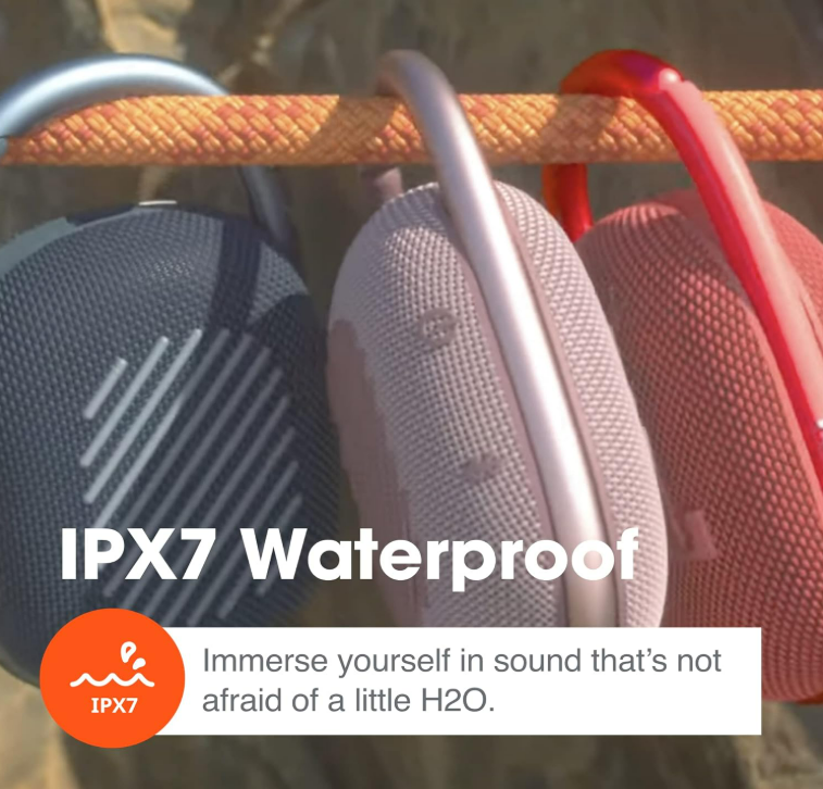 - WATERPROOF & DURABLE - No more worrying about rain or spills: The IP67-rated JBL Clip 4 is dust resistant & completely waterproof. Plus, the improved fabric material & rugged rubber housing protect the speaker on all your outdoor adventures.