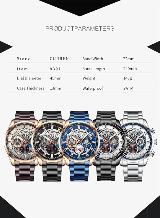 CURREN 8391 Top Luxury Brand Men's Casual Sports Watch Men's Watch, Waterproof Luminous Stainless Steel Men's Wrist Watch