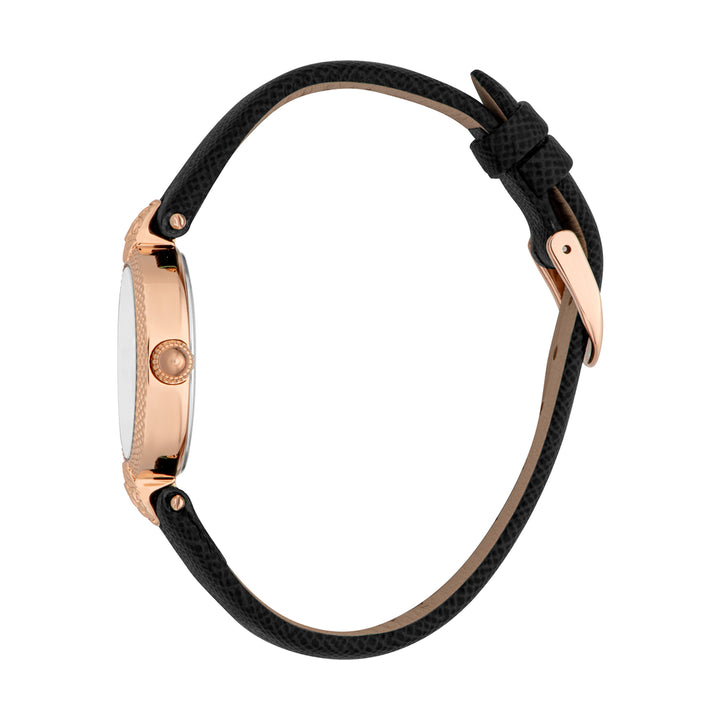 Fitted with a genuine leather strap for a comfortable and stylish fit.